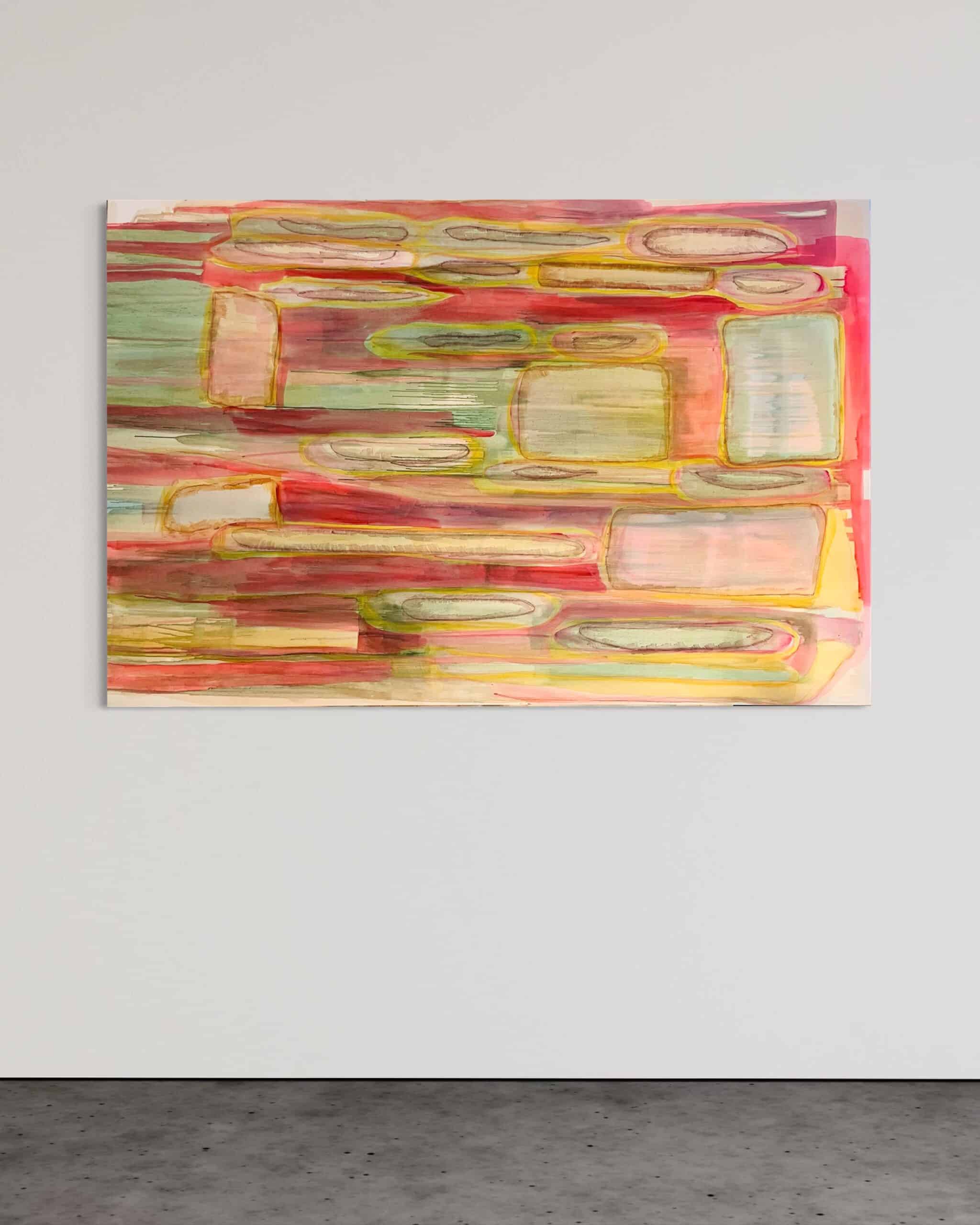 טכניקה שמשלבת אקריליק וגירים, על בד קנבס.