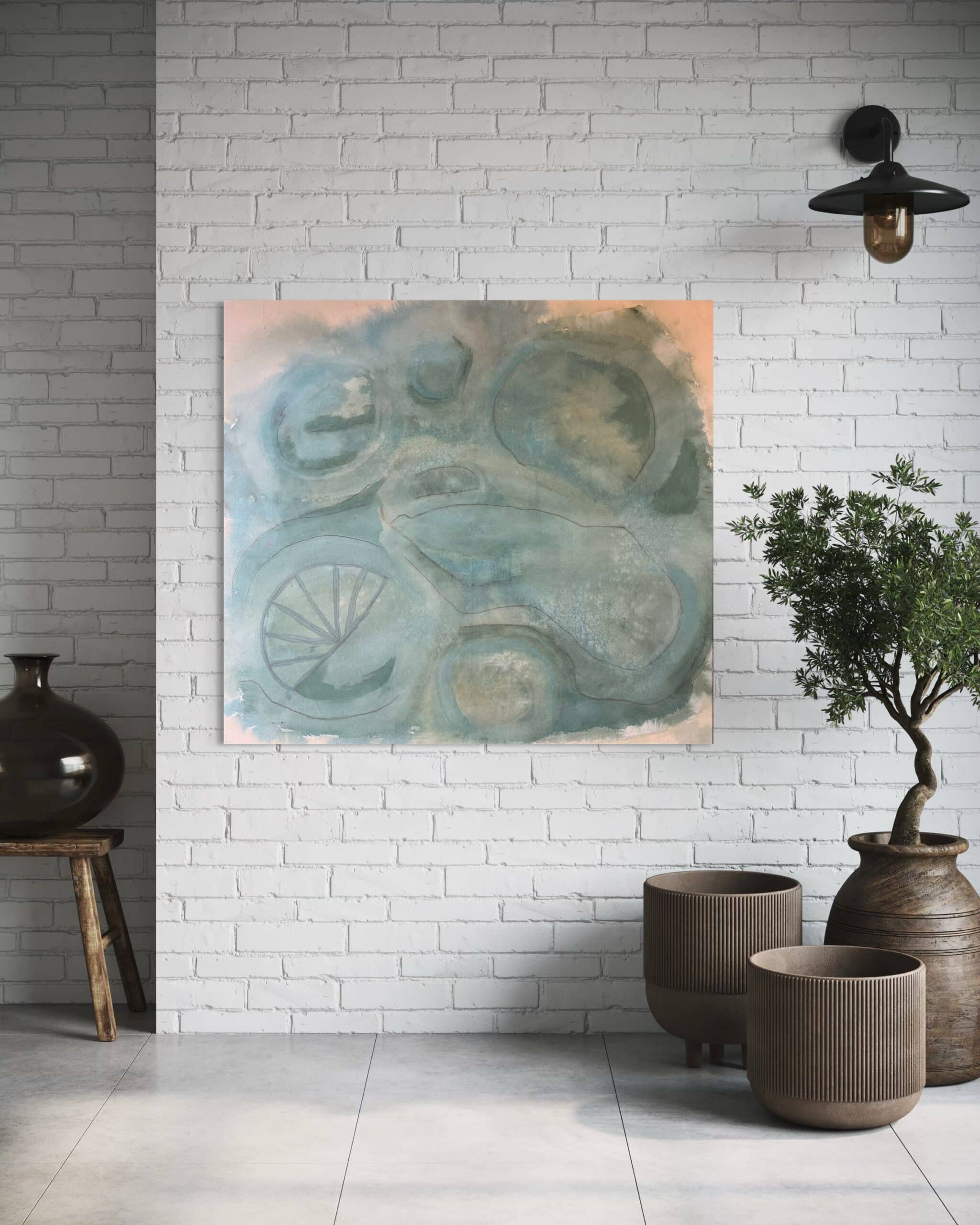 ציור מקורי אקריליק וגירים על כותנה גולמית