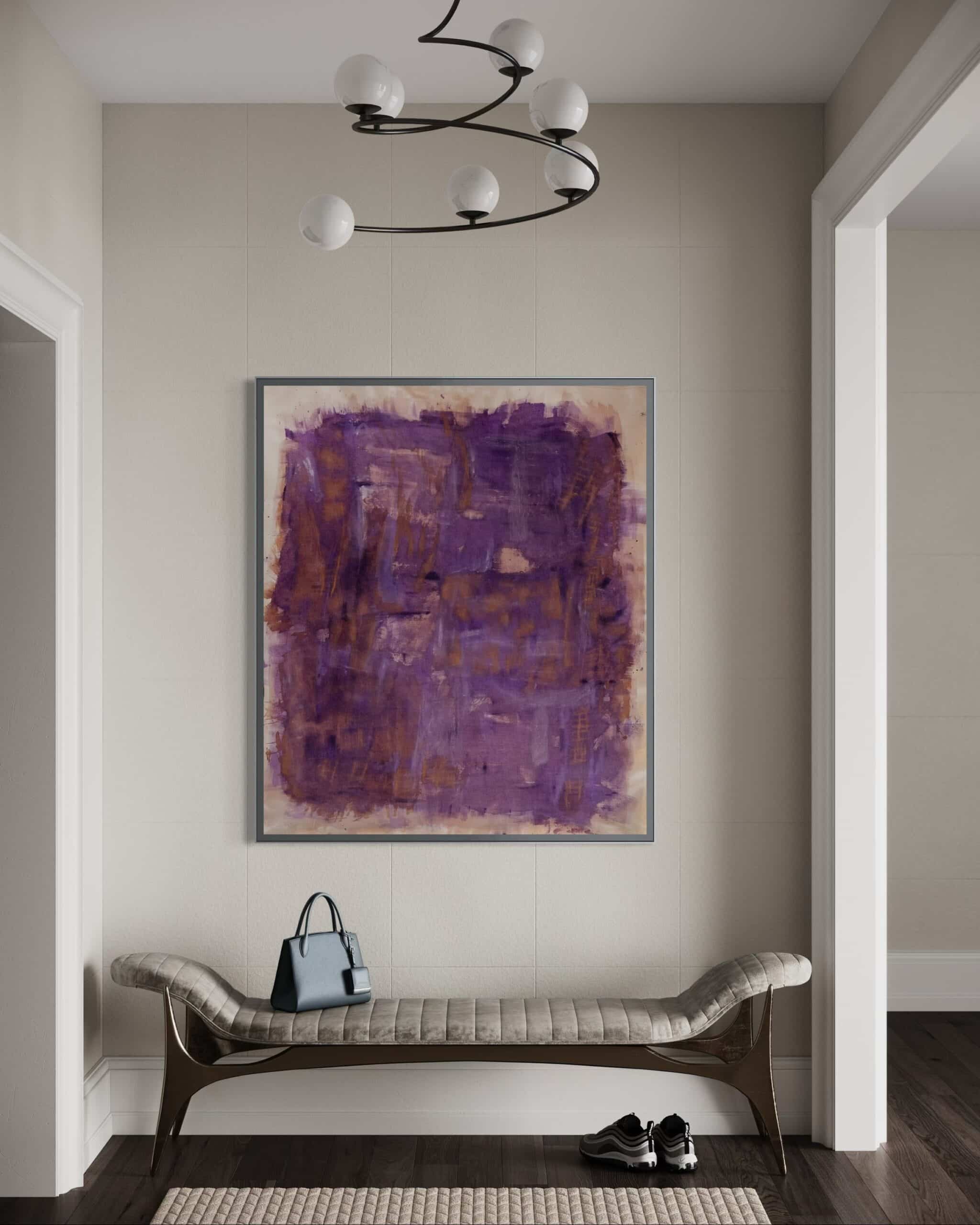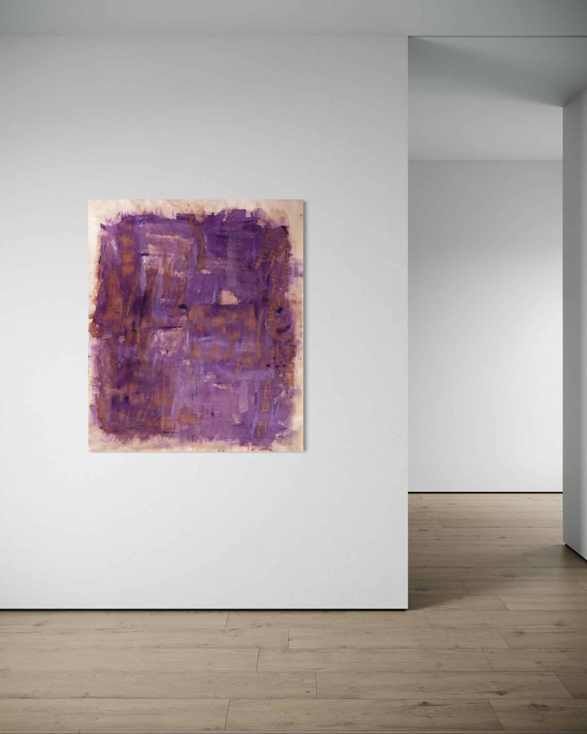 יצירה בסגול וזהב, רגשות חזקים, אנרגיה חזקה, ניגודיות אל מול צבעי אקריליק בסגנון צבעי