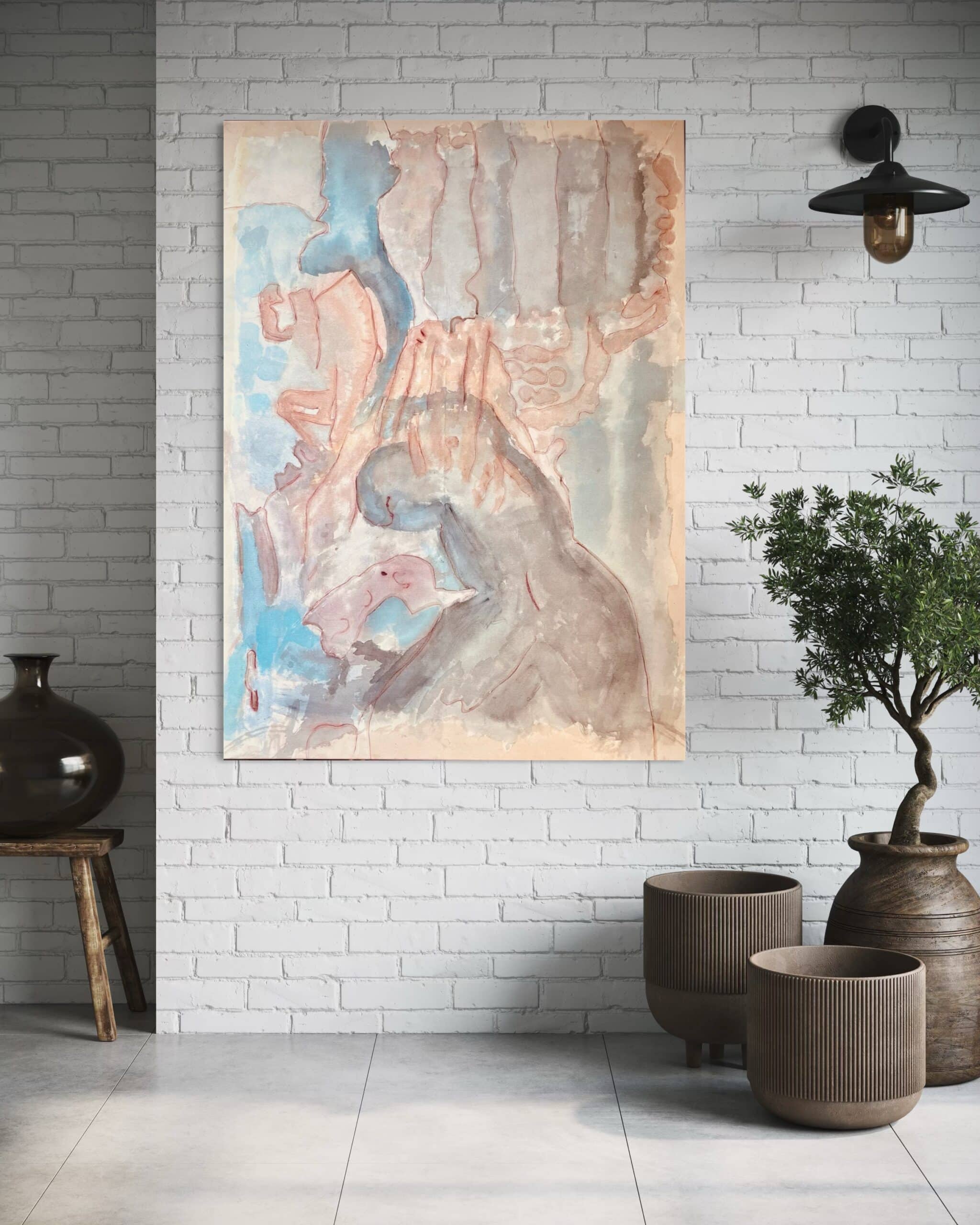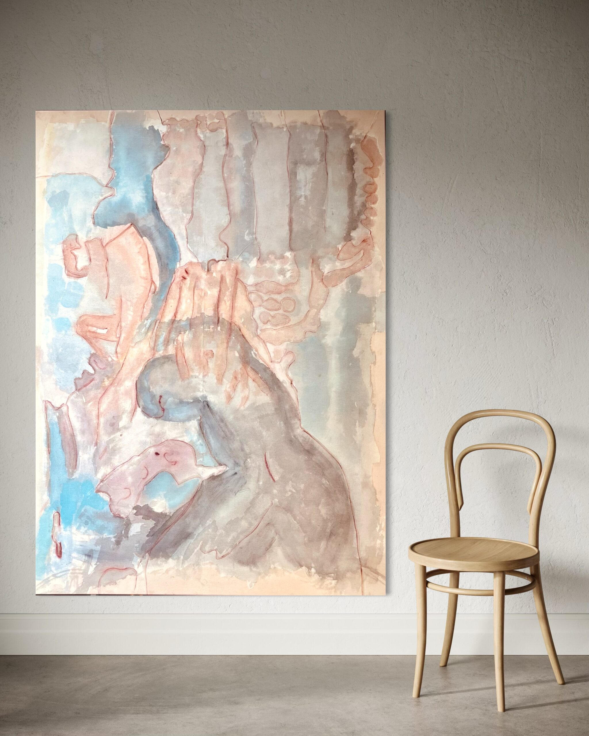 ציור מקורי אקריליק וגירים על כותנה גולמית
